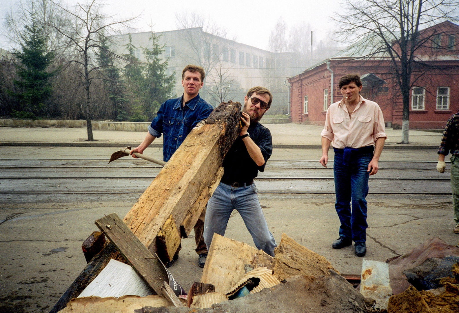 Общегородской субботник в редакции газеты "Симбирские Губернские Ведомости". Бревно ворочает Григорий Тельнов.