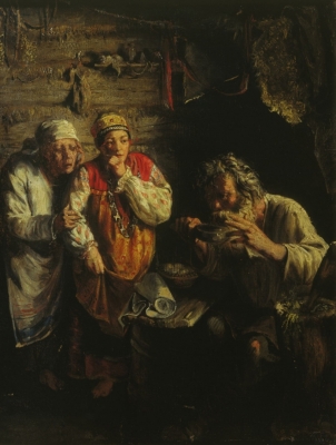 В. Максимов. Приход колдуна на крестьянскую свадьбу. 1875 год: