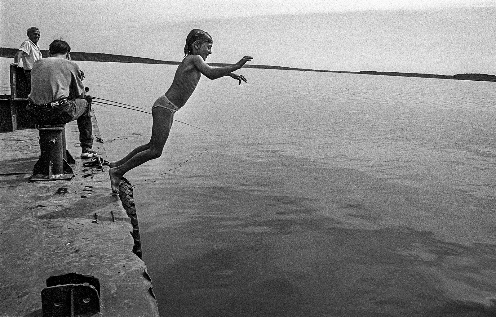 "На снимке - Старомайнский залив, старая баржа 1 июля 2001 года. Жаркий день, дети используют старую баржу для прыжков в воду, баржи уже давно нет", - рассказал автор фото - Владимир Ламзин.