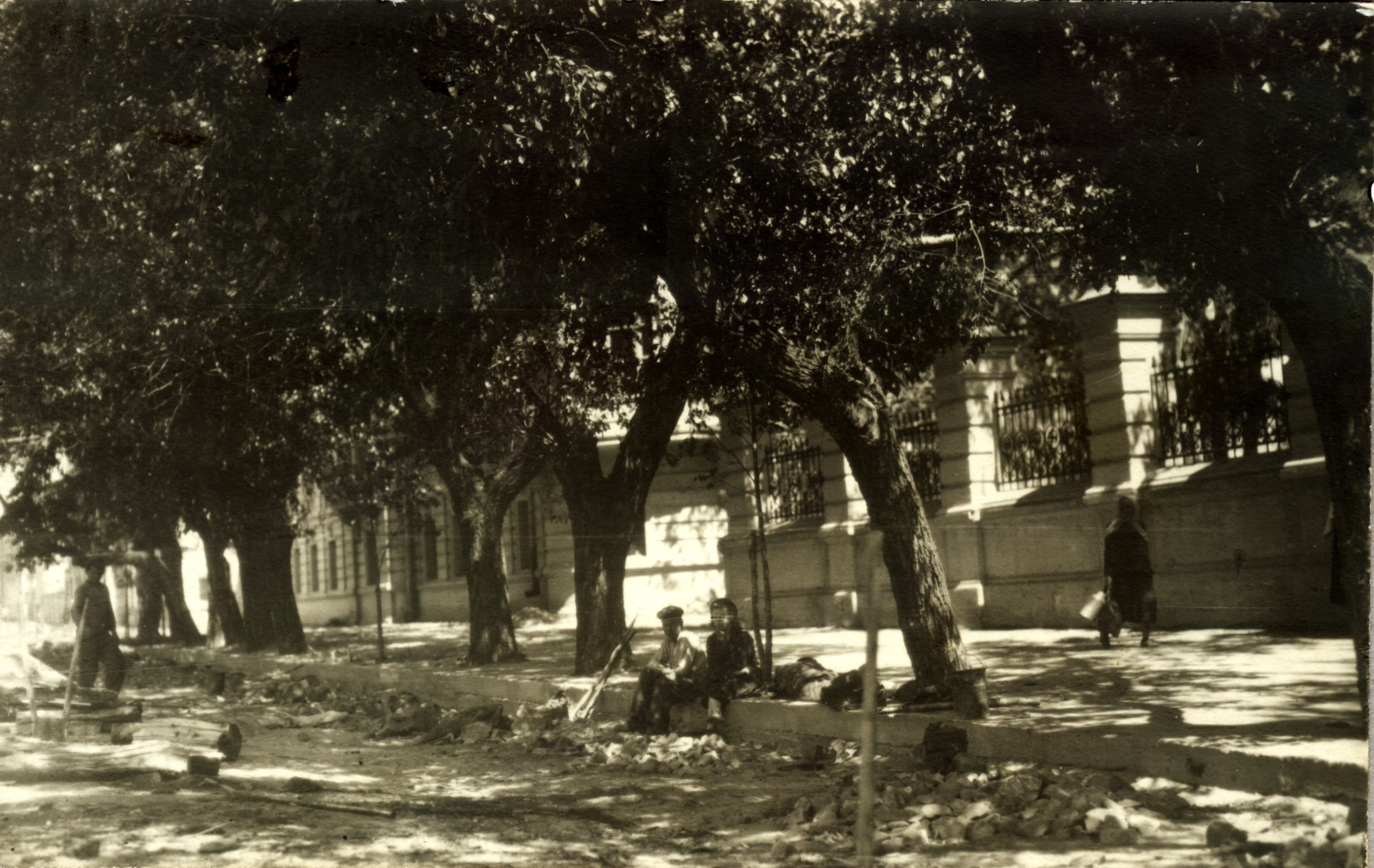 На фото виден забор с чугунной решеткой.