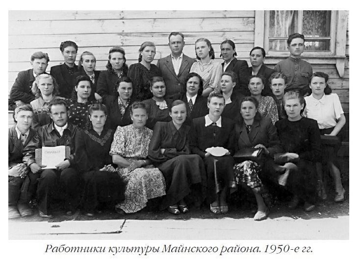На всех фотоснимках изображены люди, от трёх до трёх десятков человек. Многие фамилии удалось восстановить с помощью майнских старожилов В.Н. Журавлёвой, К.Я. Кирьяновой и Ф.Г. Туровской, тоже попавших «в кадр». Выяснилось, что на старых фотографиях оставили «след в истории» местные культпросветработники: руководители РДК и его кружков А.И. Рябинов, П.П. Сахарцев и В.И. Островский, участники художественной самодеятельности, коллективы драматического кружка, струнного и духового оркестров и агитбригады, а также приехавшие в Майну на семинар их коллеги из сёл и деревень района. Именно они (в настоящее время в подавляющем большинстве уже ушедшие из жизни) стояли в те трудные послевоенные годы «у руля» культурно-массовой работы (низкий земной поклон им за их труд).