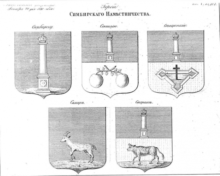 Гербы городов Симбирского наместничества, утвержденные в 1780 году:
