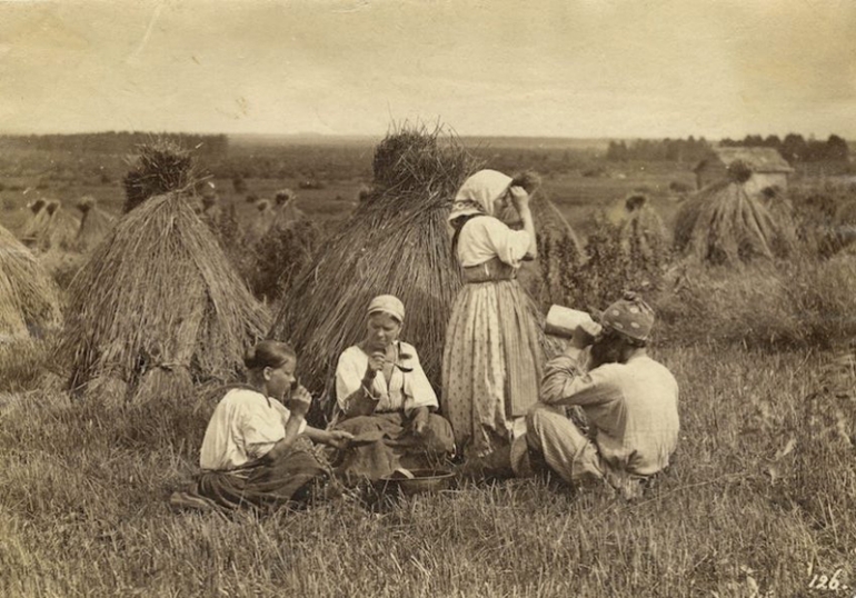 Крестьянский обед во время жатвы. Вильям Каррик, 1870-е. "Музеи России"