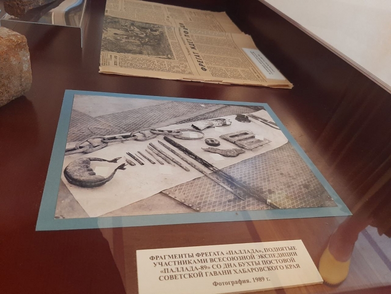 Фрегат «Паллада» стал одним из самых известных российских парусных судов. Был построен по приказу Николая I. В 1852-1855 году Иван Гончаров плавал на этом фрегате в Японию в качестве секретаря главы морской экспедиции вице-адмирала Евфимия Васильевича Путятина, у которого была миссия установить дипломатические отношения с закрытой тогда страной. Переговоры в Японии шли долго и закончились неудачно — началась русско-турецкая война, и «Палладе» приказали либо присоединиться к Камчатской эскадре, либо вернуться в Кронштадт. Моряки не смогли сделать ни того, ни другого, потому что за время плавания по северным морям, вокруг Африки, а потом долгого стояния у берегов Японии, «Паллада» стала сильно изношена. Фрегат попытались ввести в устье Амура, но не смогли и этого. В январе 1856 года «Паллада» была затоплена в Императорской гавани (ныне — гавань Советская).