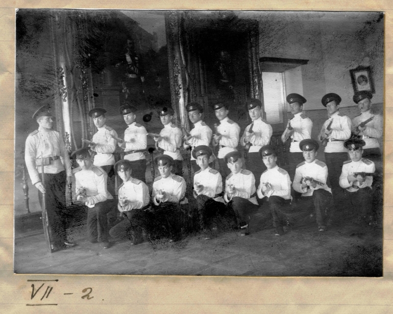 Симбирские кадеты с винтовками на фоне портетов императоров: