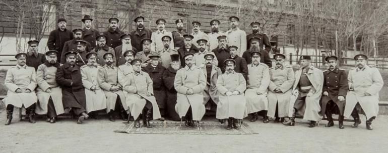 Великий князь Константин Константинович, сидит в центре на коврике среди служащих Симбирского кадетского корпуса: