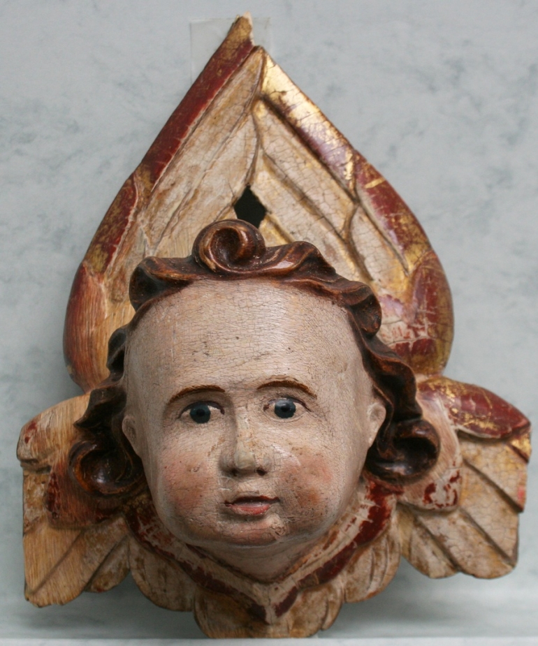 Недавняя реставрация вернула фигуркам внешнюю теплую телесность кожных покровов с мягким румянцем, синеву зрачков, коричневые дуги бровей, век и локонов на фоне сохранившейся позолоты крыльев (Инв. 359). Реставратор грамотно и качественно удалила поздние записи и восстановила первоначальный вид, что позволило раскрыть и сохранить подлинность памятника, что крайне важно для музейного собрания. Моменты реставрации смотрите в нашем ролике.