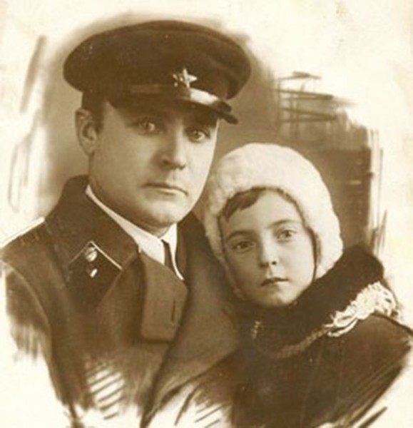Петр Шуров, начальник Ульяновского танкового училища в 1936-1940 годах, с дочерью: