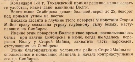 Тем временем Тухачевский, понимающий, что сражение за Симбирск зашло в тупик, придумал, как его переломить одним манёвром. Если быть точнее, сам Тухачевский ничего не придумывал, он просто воспользовался идеей Каппеля.