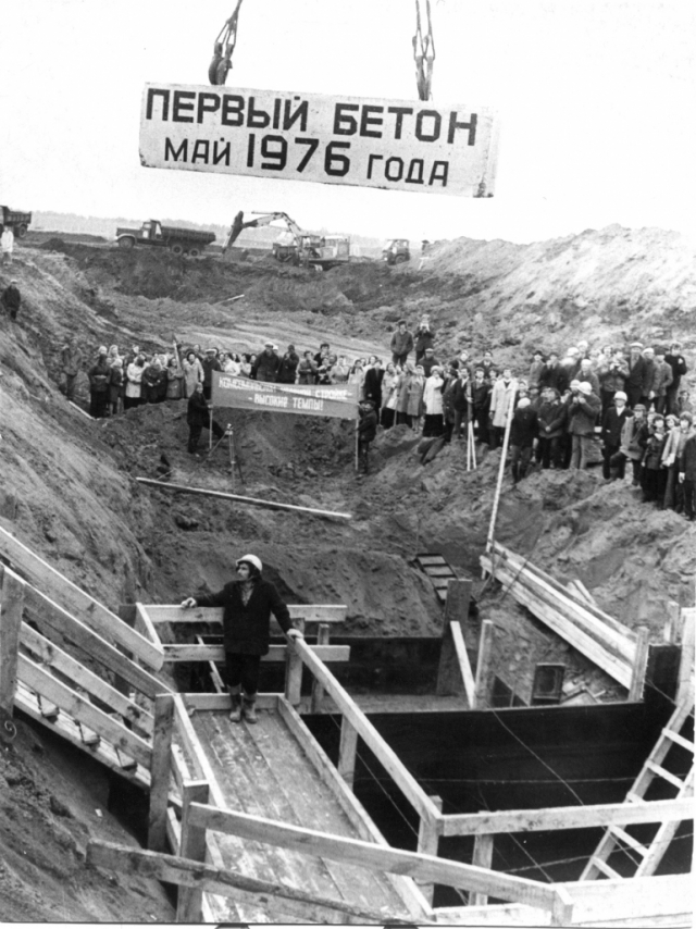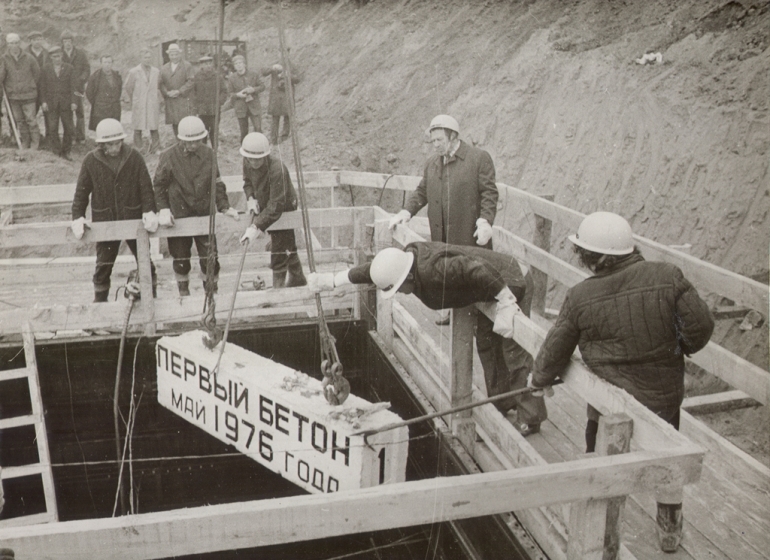 В 1976 году в торжественной обстановке под прицелом фотокамер прошла закладка первого бетона: с помощью крана в яму фундамента буквально опустил бетонный блок с подписью и датой. Первый камень был установлен 1 мая.