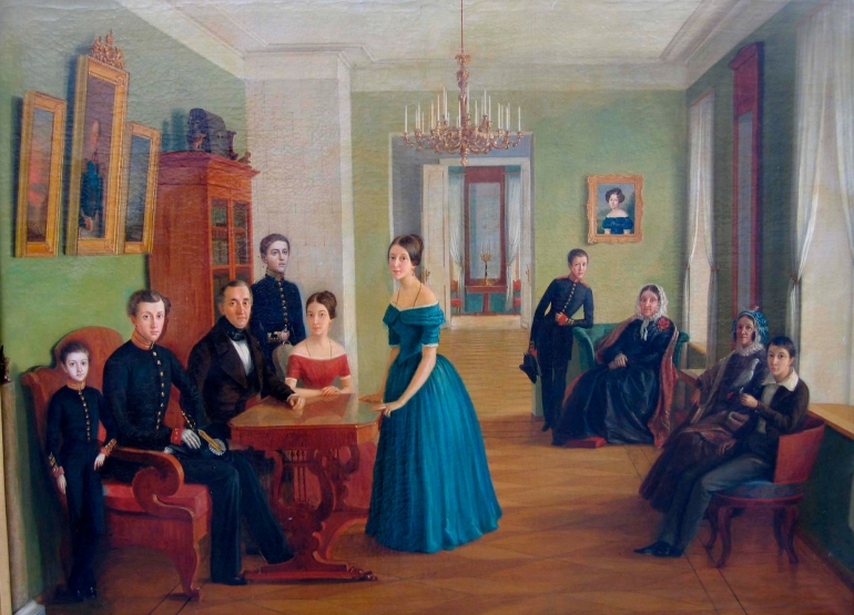 Наумовы, влиятельные родственники губернатора князя Хованского, в дальнем углу, под портретом дочери Софьи, сидит овдовевшая во второй раз Екатерина Александровна:
