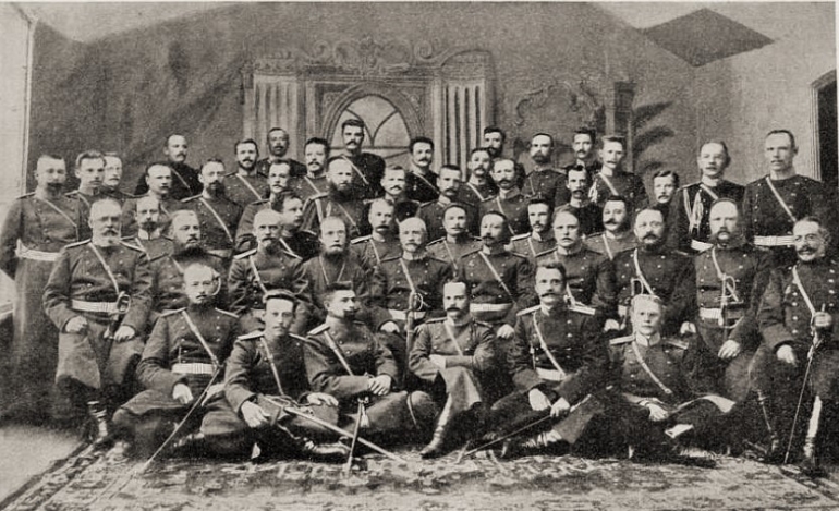 Полковник Эккерсдорф, в центре, среди подчинённых офицеров во время Русско-японской войны: