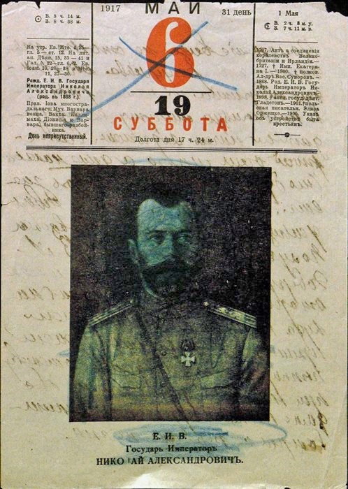 Лист из настенного календаря генерала А. Глинского с замаранным карандашом Николаем II: