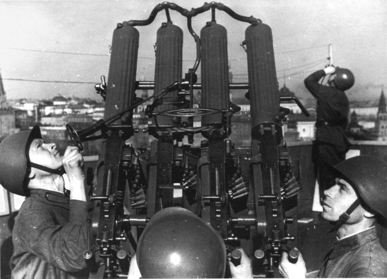 Счетверённая зенитная пулемётная установка на страже московского неба. 1941 год: