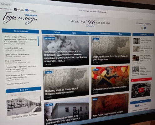 Исторический проект «Годы и люди» - зарегистрированное СМИ, отдельный интернет-портал, позволяющий изучить факты из истории Симбирска-Ульяновска. Удобный рубрикатор помогает найти информацию, все материалы отсортированы по годам, событиям, персонажам, авторам. Сегодня в архиве проекта собрано 8 800 материалов.