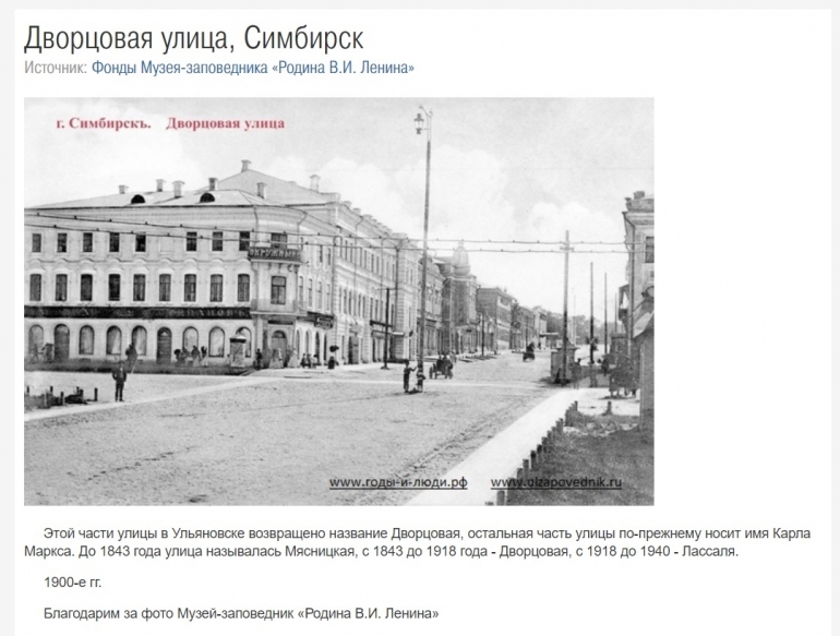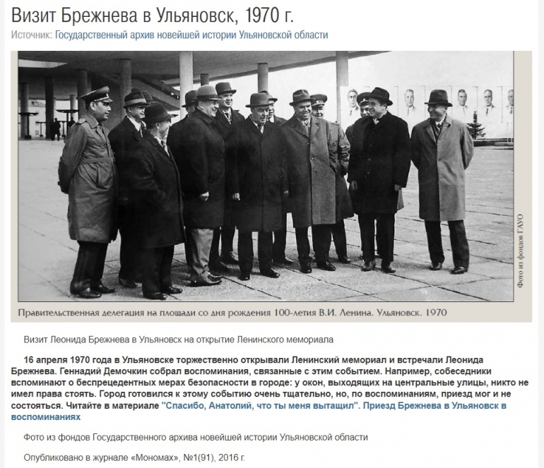Более полно представить события помогают фотографии и видеохроника. На сайте можно найти, к примеру, снимки дореволюционного Симбирска и утраченные здания, этапы строительства старого моста через Волгу и Ленинского мемориала – от установки колонн до торжественного открытия с участием Генсека СССР Леонида Брежнева.