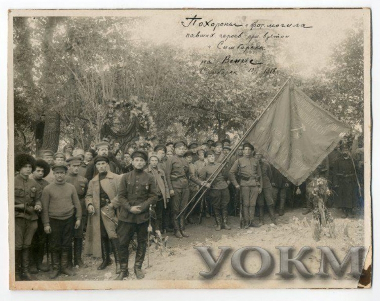 Про семнадцать мы знаем из воспоминаний командира Железной дивизии Гая Дмитриевича Гая, что они были погребены в братской могиле на симбирском Венце. Могилу мы видим на снимках, сделанных осенью 1918 года, в окружении бойцов Железной дивизии, салютующих мёртвым товарищам почётным знаменем ВЦИК, врученным дивизии за взятие Симбирска 28 сентября 1918 года. Видно, что могила не очень большая – едва ли столпившиеся живые бойцы попирали ногами место последнего покоя своих боевых товарищей: гробы бойцов-интернационалистов, видимо, были положены в несколько слоёв.