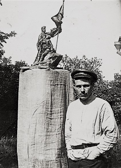 Художник Аркадий Пластов рядом с собственной моделью памятника Борцам революции: