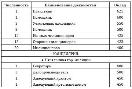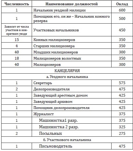 ШТАТЫ И ОКЛАДЫ УЕЗДНОЙ МИЛИЦИИ