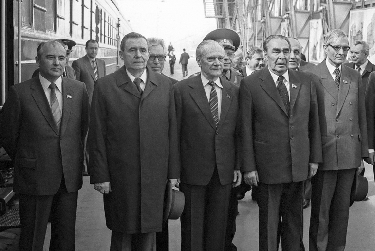Горбачев – первый слева, Брежнев – второй справа, Суслов – первый справа:
