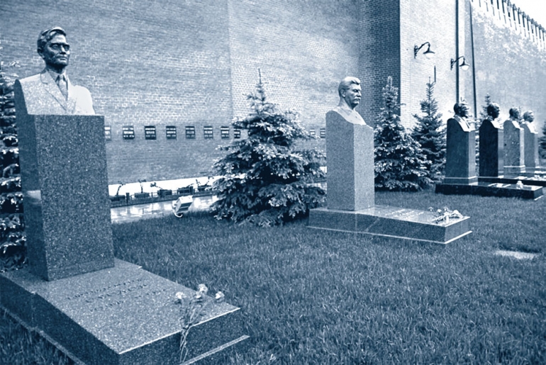 Бюсты Суслова и Сталина у Кремлёвской стены: