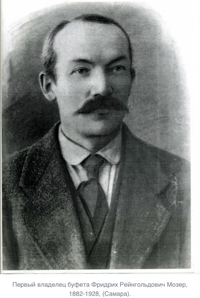 Как сообщила дарительница буфета, правнучка Мозера Елена Станиславовна Волкова, дед был неграмотным, умел только расписываться, но хорошо разбирался в механике и занимал ответственную должность на производстве. Годом позднее после смерти Фридриха Мозера в 1928 году в Самаре, его жена и дочь переехали в Ульяновск в связи с переводом мужа дочери И.И. Мокеева (1907-1942, погиб на Сталинградском фронте) в «12-ю Ульяновскую дважды Краснознамённую школу командного состава имени В. И. Ленина» (с 1936 года Ульяновское дважды Краснознамённое танковое училище имени В. И. Ленина). Бабушка В.Ф. Мокеева (1908-2003), рассказывала, что квартира отца Ф.Р. Мозера в Самаре находилась при пивоваренном заводе. При переезде привезли в Ульяновск большой обеденный стол, письменный стол с зеленым сукном, платяной шкаф, венские стулья, буфет и другие предметы, которые служили нескольким поколениям семьи. Как выяснилось, история бытования буфета неотрывна от жизни людей, истории края, государства, присутствуя и сопровождая основные события.