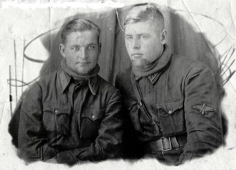 Вадим Фадеев, справа, с товарищем Григорием Плотниковым в сентябре 1941 года. Видно,что у Плотникова тоже есть маленькая бородка: