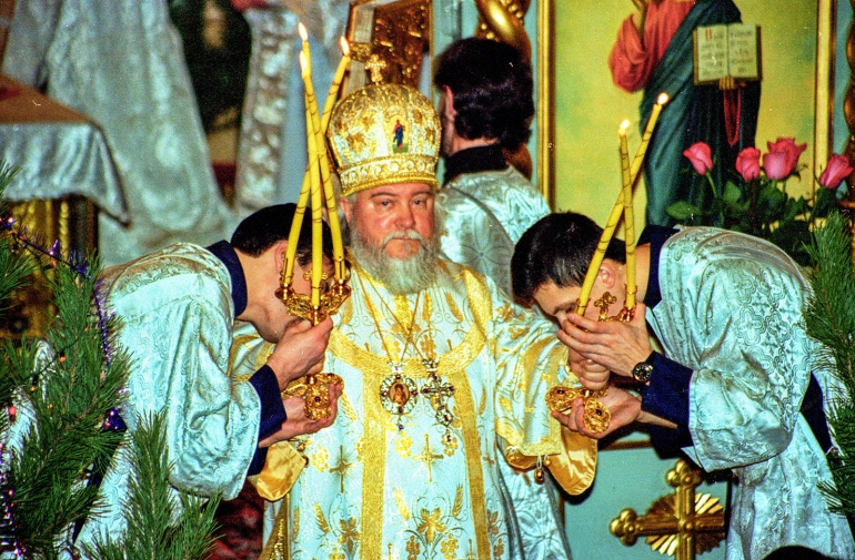 Владыка Прокл в Неопалимовском кафедральном соборе. 6 января 1998 года, фото Владимира Ламзина.