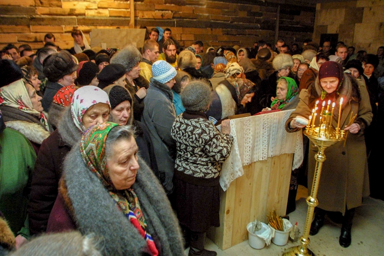 Рождество 2003 года в маленьком храме на Авиастроителей в Новом городе, фото Владимира Ламзина.
