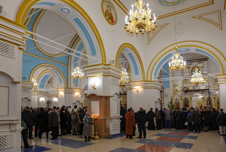 Рождество 2015. Праздничная служба в строящемся Спасо-Вознесенском соборе, фото Владимира Ламзина.