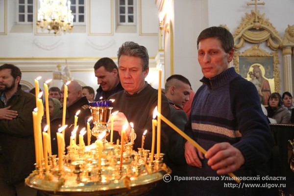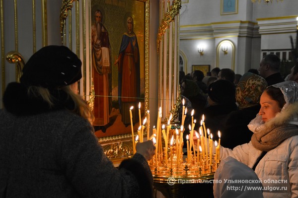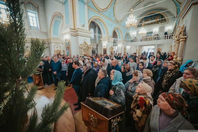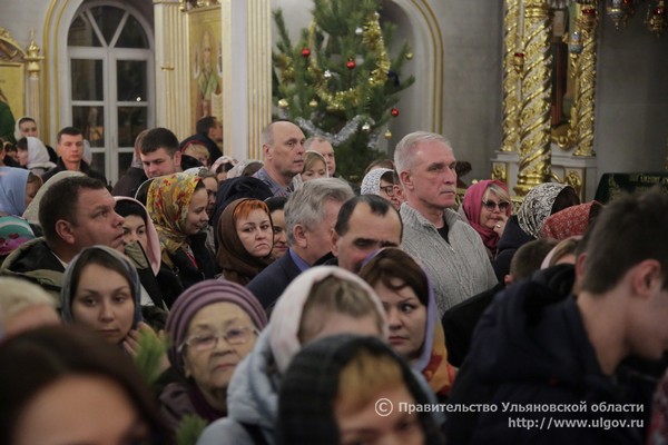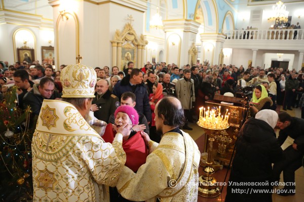 Митрополит Симбирский и Новоспасский Анастасий провел службу в кафедральном соборе. 6 января 2016 года. Фотоархив пресс-службы правительства Ульяновской области.