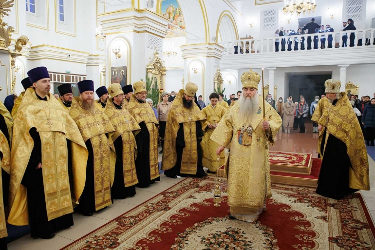 Митрополит Иосиф, праздничное богослужение в Спасо-Вознесенском соборе, 6 января 2020 года. Фотоархив Симбирской епархии и правительства Ульяновской области.