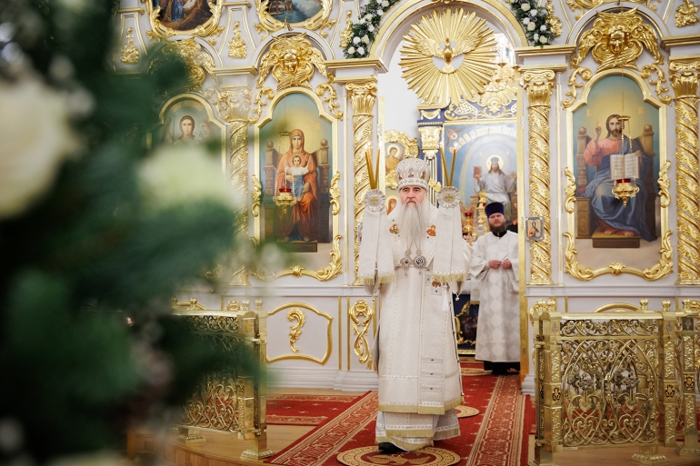 7 января 2022 года, Митрополит Симбирский и Новоспасский Лонгин совершает великую Рождественскую вечерню в Спасо-Вознесенском кафедральном соборе. Фотоархив епархии.