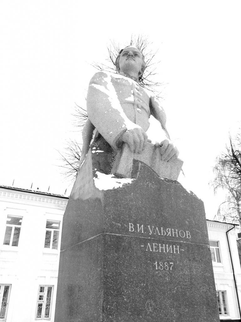 Памятник Ленину-гимназисту. На пьедестале указана дата 1887, год отъезда В. Ульянова из Симбирска, хотя уезжал он пароходом, поезда в Симбирск пока не ходили: