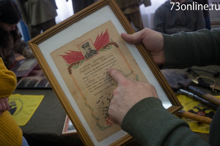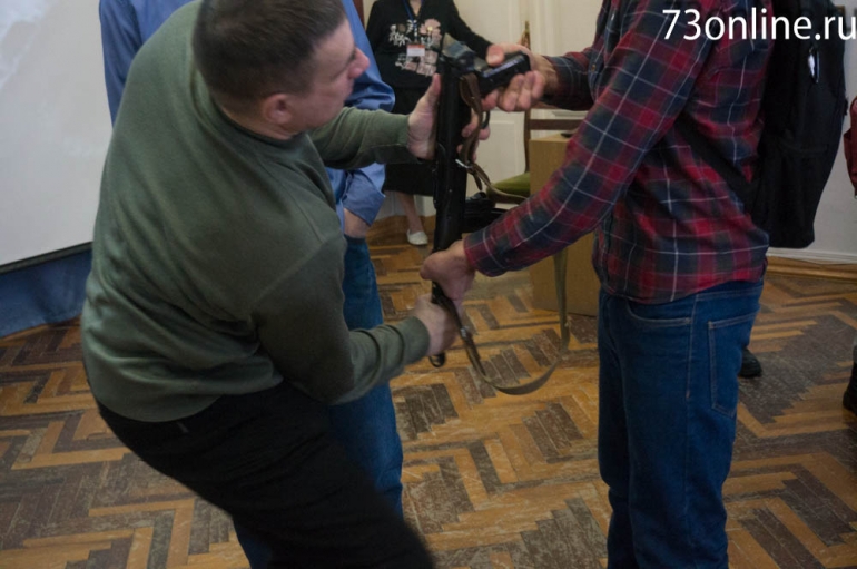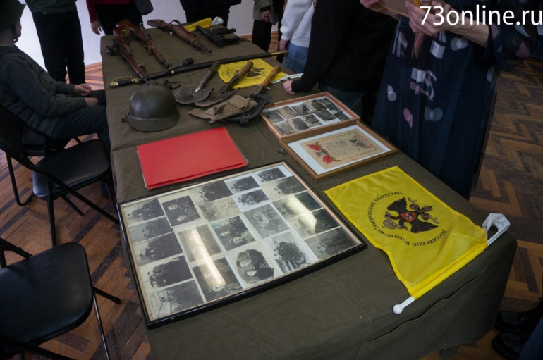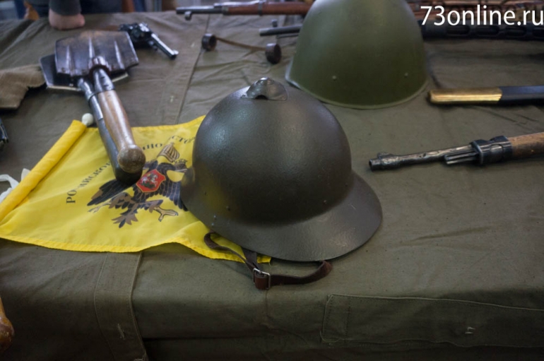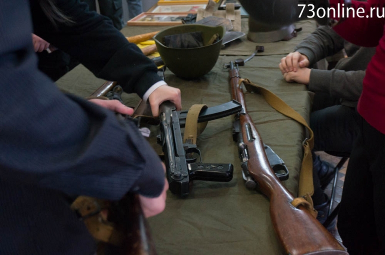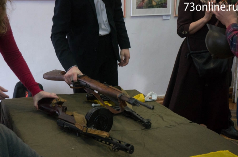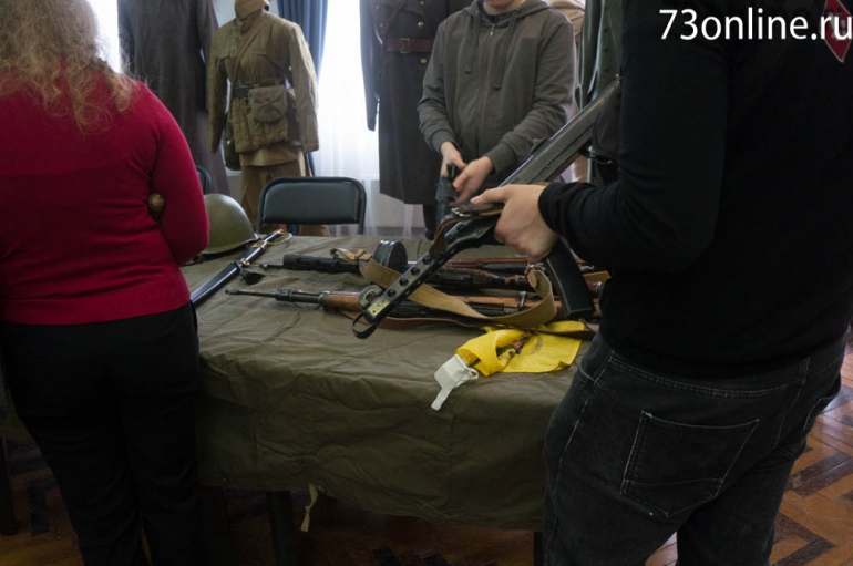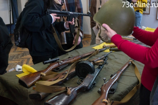 Крутануть барабан нагана, упереть в плечо Мосинку и нажать на курок ППШ — однодневная интерактивная выставка «След героя» прошла в музее «Симбирская чувашская школа. Квартира И.Я. Яковлева» в преддверии Дня защитника Отечества. Экспонаты из личной коллекции представил руководитель военно-исторического клуба «Ульяновцы в боях за Родину» Олег Вагин, он же рассказал об оружии, обмундировании и своем дедушке, прошедшем Великую Отечественную войну.