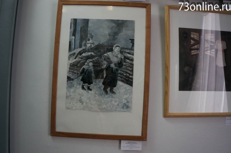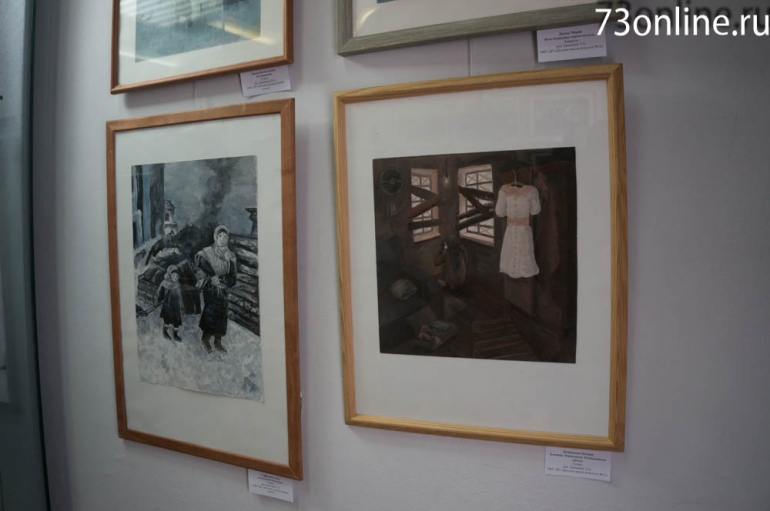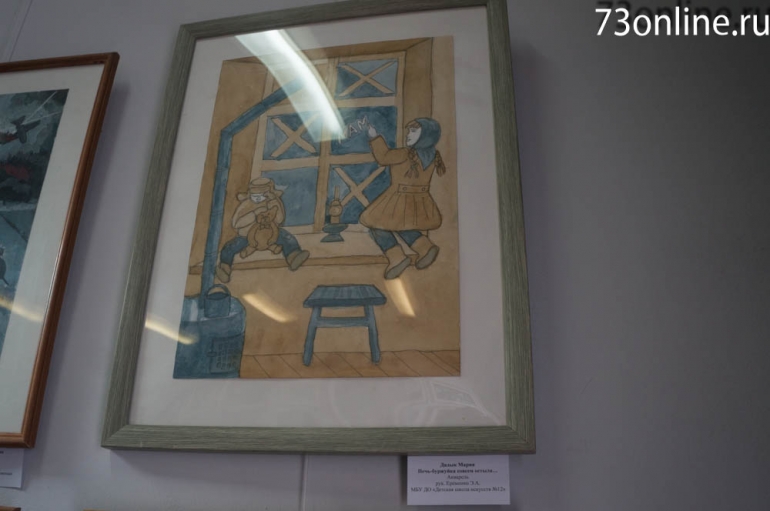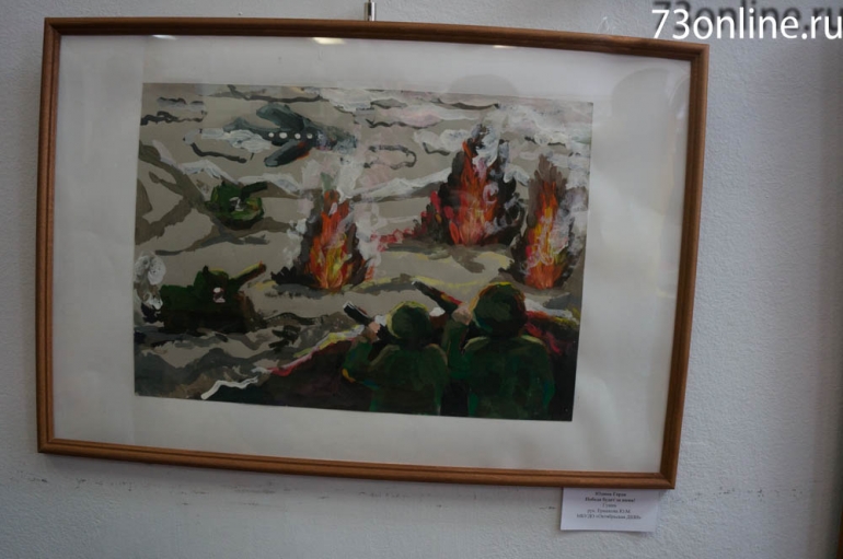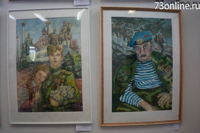 Обрамлением однодневной выставки стали творческие работы воспитанников детских художественных школ Ульяновской области, Уфы и Пензы, участвовавших в конкурсе на лучшую композицию «Салют защитникам Отечества!». Сюжеты отражают основные темы конкурса: «Одна Победа на всех», «Портрет героя Великой Отечественной войны», «Иллюстрируем книгу о Великой Отечественной войне». На рисунках — сцены боя, подвиги, родственники, участвовавшие в ВОВ, и — в этом году добавилась новая тема — герои войны в Афганистане.