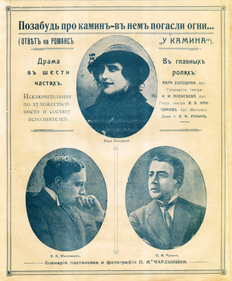 Легендой стала другая подопечная Чардынина, Вера Васильевна Левченко (1893 – 1919), прославленная как Вера Холодная, «королева экрана», самая знаменитая киноактриса эпохи. Фильмы Петра Ивановича с Верой Холодной «Позабудь про камин, в нём погасли огни…» и «Молчи, грусть… молчи…» стали абсолютными рекордсменами российского кинематографа по кассовым сборам за первое десятилетие его существования.