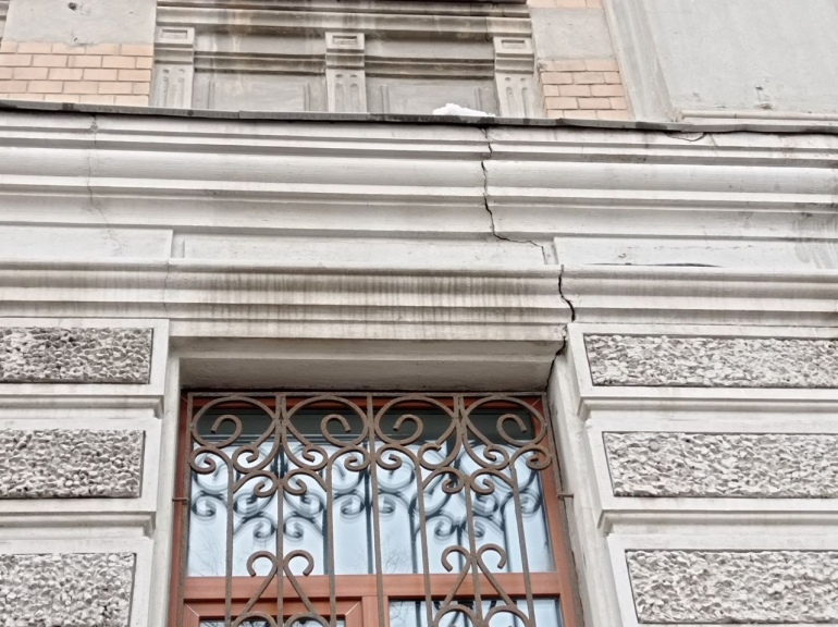 Вблизи здание не развенчивает первое впечатление. Напротив, становится очевидным, что оно нуждается в реставрации: самое малое повреждение — отваливающаяся краска. По фасаду виднеются трещины, львы выглядят усталыми, словно через минуту опустят головы и слетят вниз.