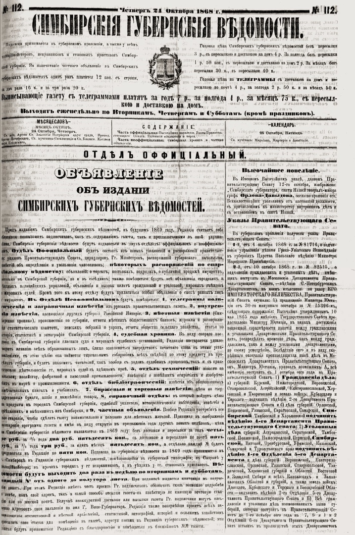 Парадокс, но «Симбирские губернские ведомости», только-только начав печататься, вмиг сделались едва не самой популярной газетой в Российской Империи — если не у рядовых читателей, то у знатоков-коллекционеров!