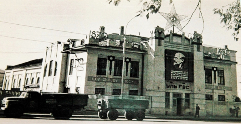 Здание УльГЭС, украшенное к 100-летию В. Ленина: