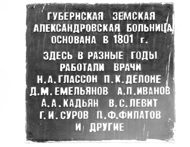 Информационная доска со здания Ульяновской областной больницы с упоминанием доктора Емельянова: