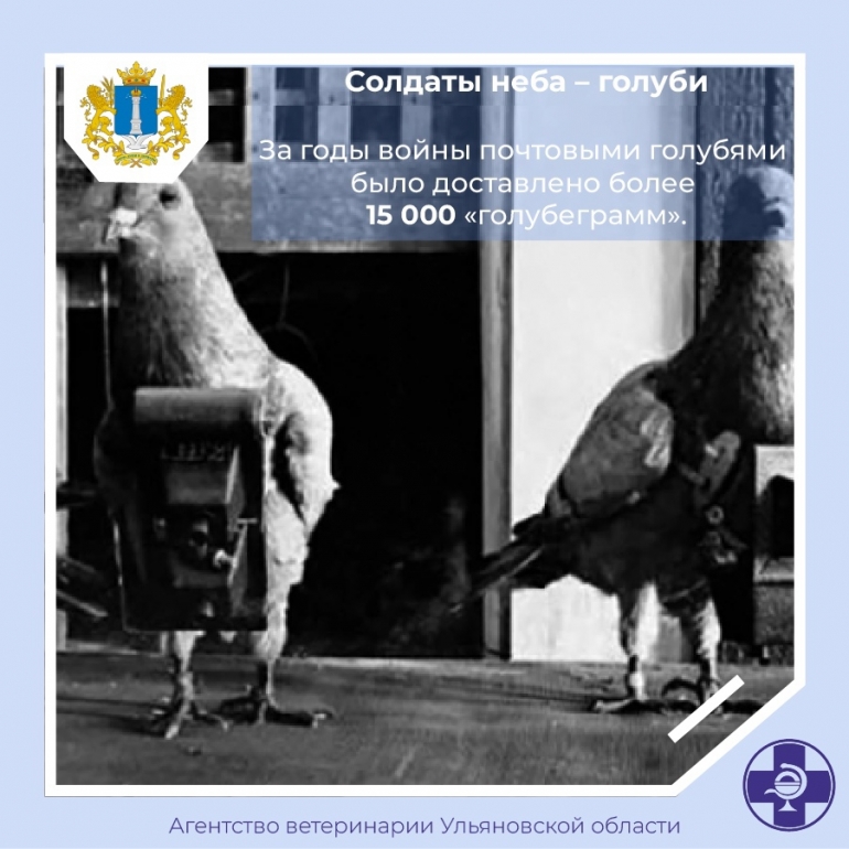 За годы войны почтовыми голубями было доставлено более 15 000 «голубеграмм». Тексты писали на небольших листках очень тонкой бумаги, которые сворачивали в трубочку и вкладывали в легкую металлическую трубку. Она крепилась к лапке голубя. Голуби осуществляли еще и боевые вылеты, доставляя в тыл врага зажигательные снаряды. Они также широко использовались в интересах разведывательных отделов армий. К голубям прикрепляли приспособления для фотосъемки местности.