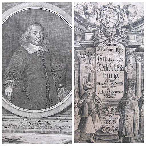 Портрет Адама Олеария и обложка его книги “Описание путешествия в Московию”: