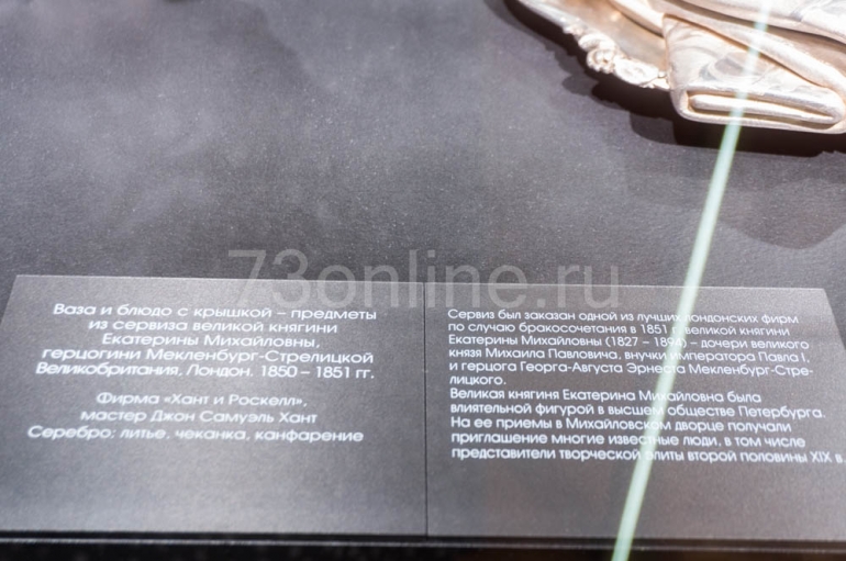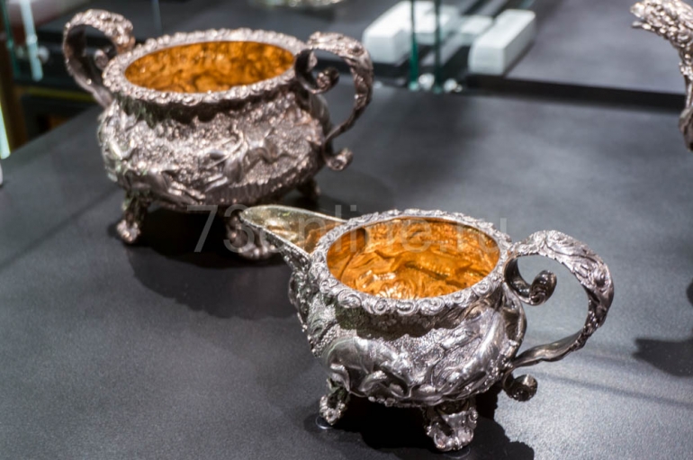 – Вопрос, который всегда волнует и посетителей, и журналистов, когда речь заходит о драгоценных металлах – цена предметов. Безусловно, вещи дорогие, хотя бы потому, что выполнены из серебра. Но стоимость их весьма условна, многие экземпляры невозможно оценить – они бесценны, потому что не имеют аналогов. Куда важнее их художественная и историческая ценность, – объясняет куратор выставки, к.и.н., старший научный сотрудник отдела драгоценных металлов фондов ГИМ Мария Ворожбитова.