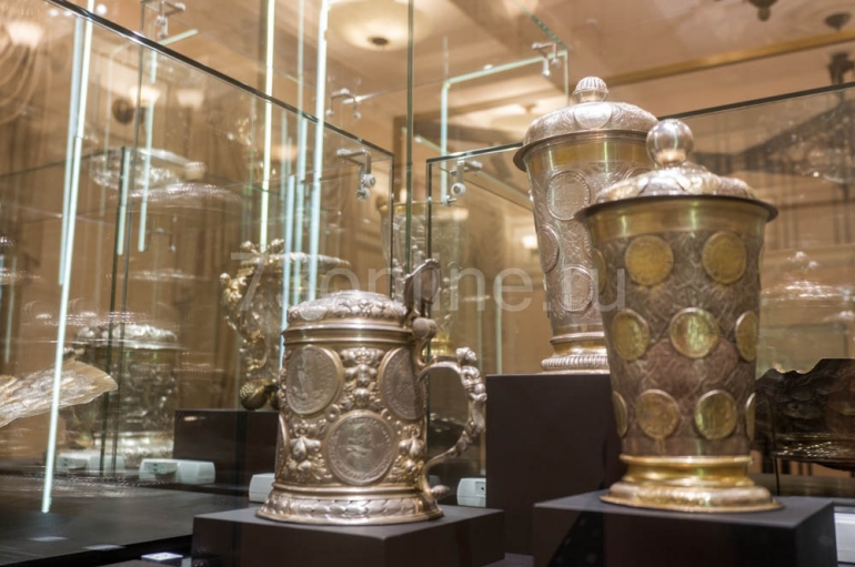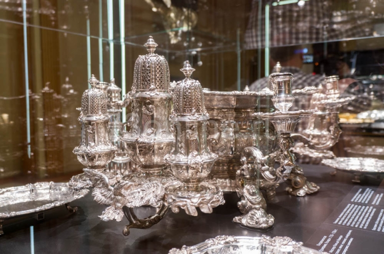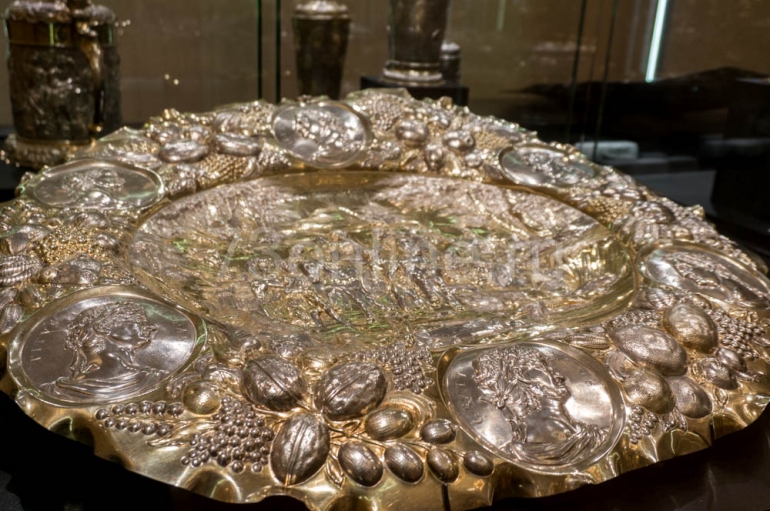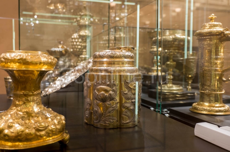 Первое, что бросается в глаза в первом же зале, что многие вещи не просто серебряные – позолоченные. Это часто делалось, чтобы предотвратить окисление, образование патины. Кроме того, позолота придавала вещам дополнительную материальную ценность.