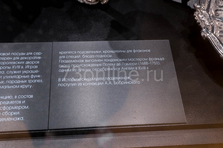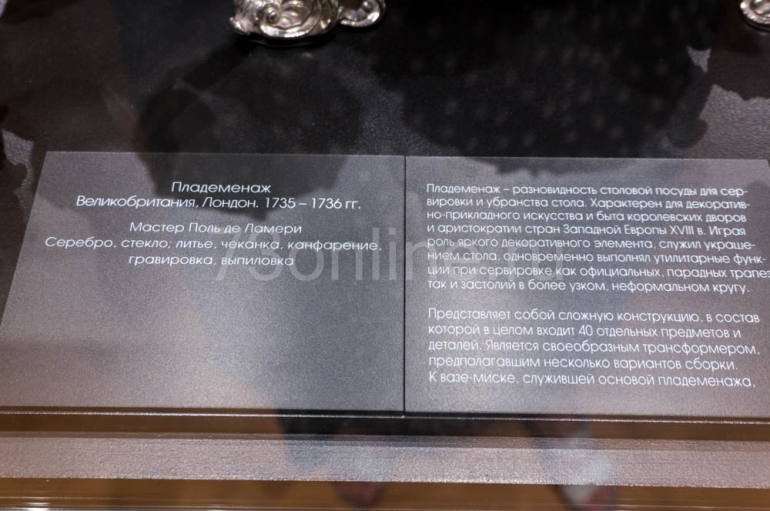 Один из наиболее интересных экспонатов выставки, который может заинтриговать одним своим названием – пладеменаж, предназначенный для сервировки и украшения стола. Этот столовый прибор, без преувеличения, являлся исключительно предметом дворцового быта и интерьера.