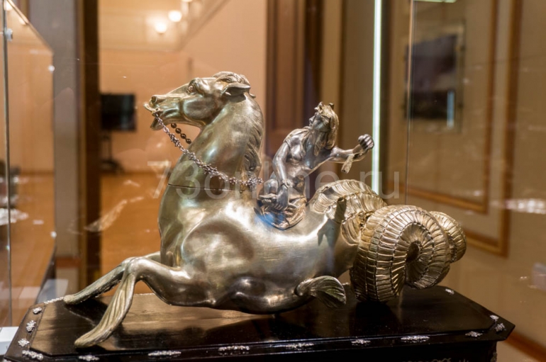 Настольные скульптуры – характерная вещь эпохи барокко. На представленных экспонатах изображены морские чудовища греческой мифологии гиппокампы – лошади с рыбьим хвостом и ластами вместо ног.