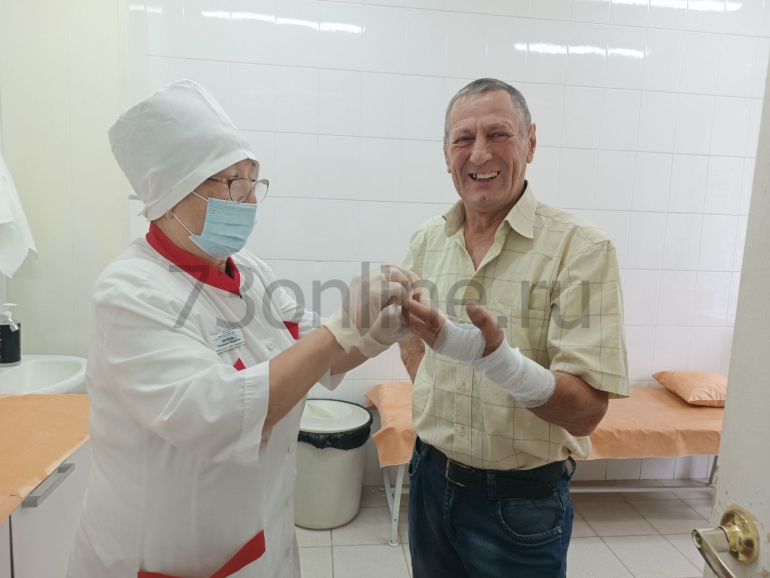 У мужчины травматический шок: нужно сильное обезболивающее – наркотические препараты. Врач звонит в стационар, через пару минут в кабинете появляется медсестра, мужчину усаживают на коляску. Тот по-прежнему поддерживает забинтованную руку. Тяжелому пациенту делают обезболивающий укол и отправляют в стационар.