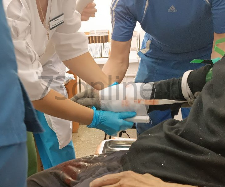 Вдруг дверь кабинета резко открылась и под руки завели мужчину средних лет почти без чувств. Одежда вся в крови, правая рука висит, словно плеть – сломанные кости торчат наружу. Пациент закатывает глаза, его аккуратно усаживают на кушетку.