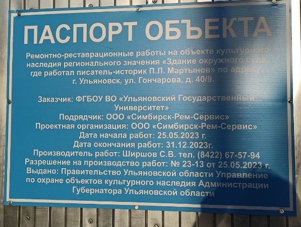 Альма-матер мэра Москвы Сергея Собянина – здание на перекрестке улиц Гончарова и Дворцовой, в котором расположен юрфак УлГУ, завесили баннерной сеткой. В конце мая его начали реставрировать. Подряд взяла ульяновская строительная компания «Симбирск-Рем-Сервис», работающая на рынке больше 25 лет. В «анамнезе» фирмы – работы на других региональных ОКН и одно уголовное дело.